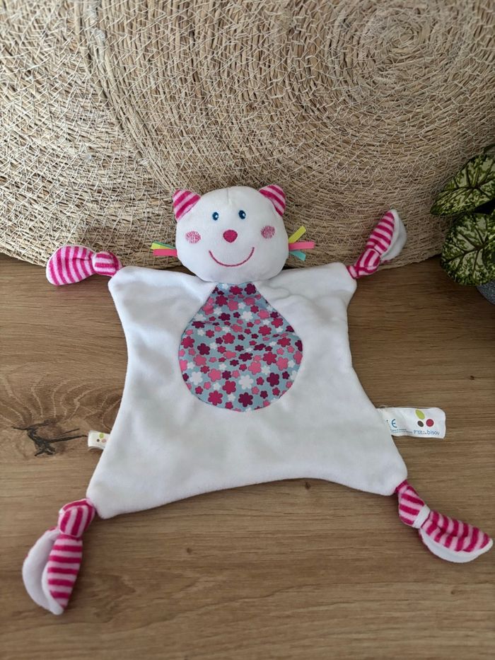 Doudou plat chat rose blanc p’tit bisou Aubert  - photo numéro 1