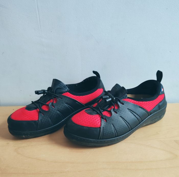 Podowell chaussures en cuir noir et toile rouge - photo numéro 1