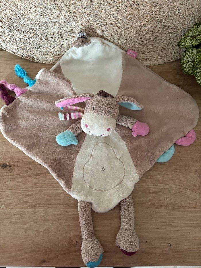 Doudou plat âne beige rose bleu baby sun  babysun  - photo numéro 1