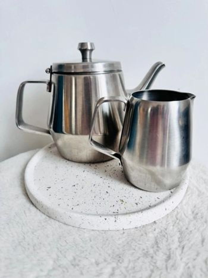 Sublime set à thé - théière et son pot de lait en inox 18/8 - photo numéro 1