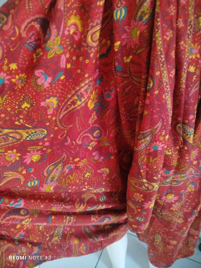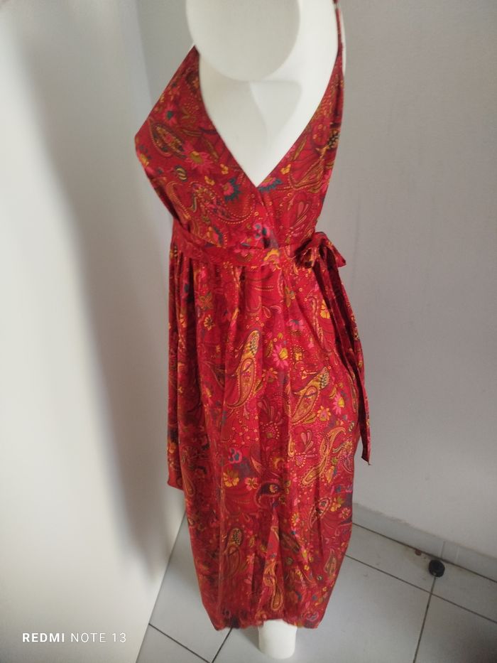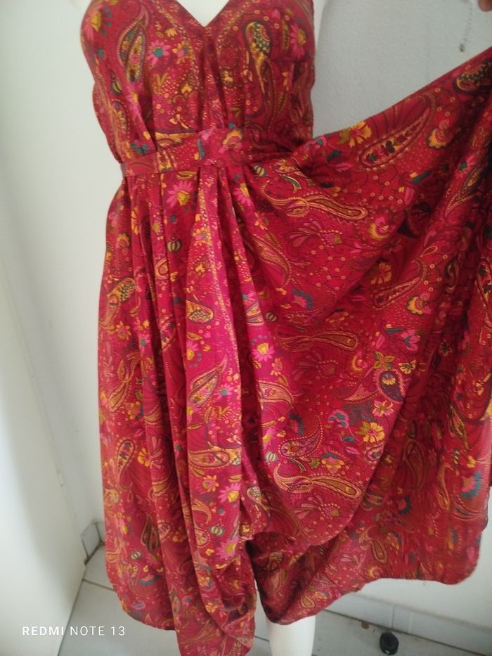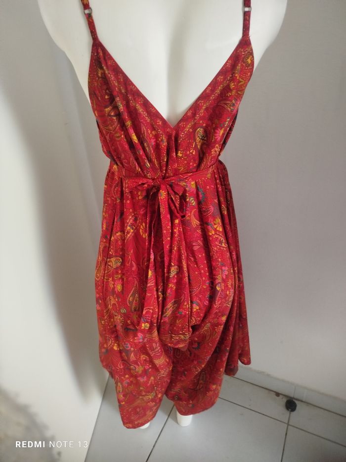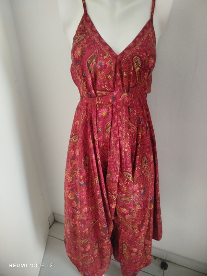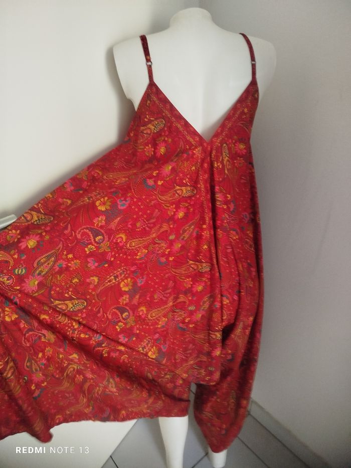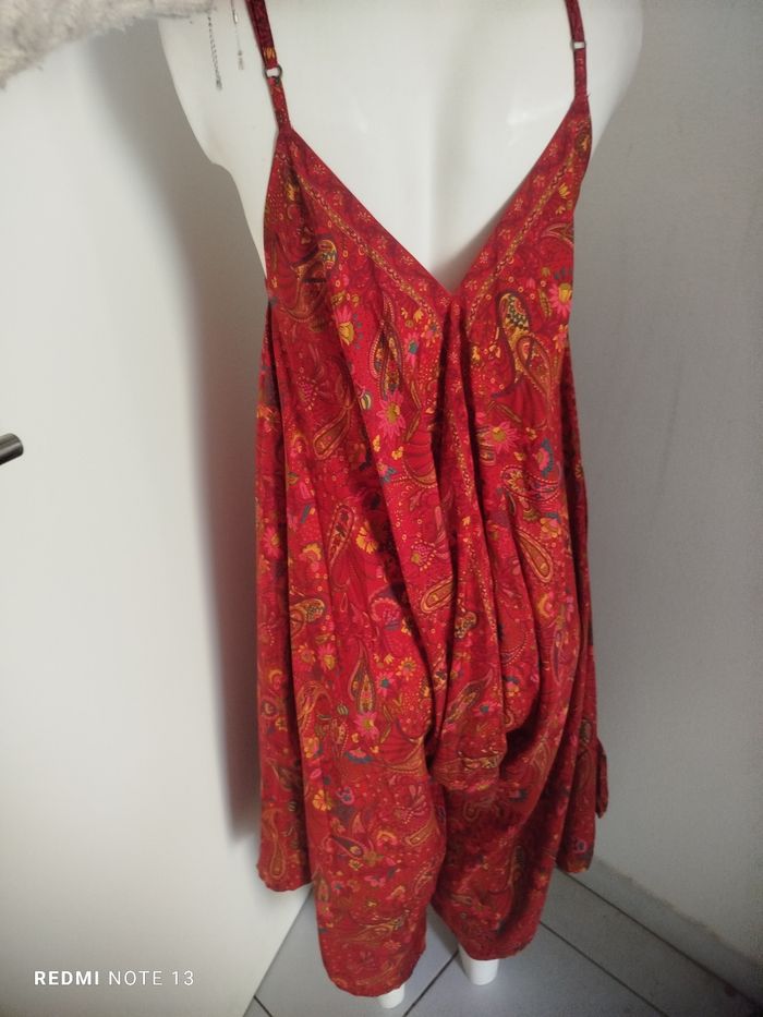 #kytieSfemme. Combinaison sarouel bretelles taille S/M de marque Keawa col V devant et derrière bretelles réglable avec une ceinture évasée pluie des souples effet satiné hyper confortable de couleur bordeaux rouge multicolore mesure des aisselles 54 cm hauteur hauteur devant 90 cm hauteur sur les côtés 135 cm la combinaison est neuve ref 67