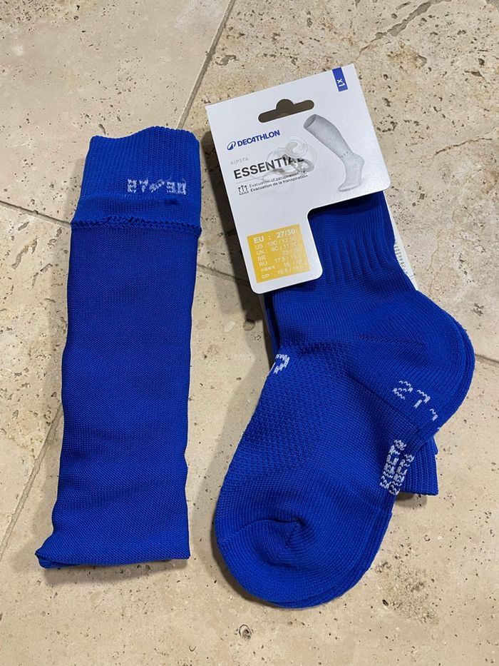 Deux paires de chaussettes de foot neuf encore étiqueté la deuxième paire est neuf aussi ont c’est aperçu qu’ont c’étais tromper de taille en enlevant l’étiquette taille 28/30