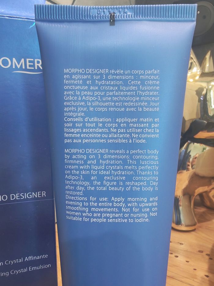 Morpho désigner à trois grandes actions : minceur, fermeté et hydratation. Sa crème onctueuse aux cristaux liquides apporte une parfaite hydratation. Grâce à Adipo-3, une technologie minceur exclusive, la silhouette est resculptée.  Produit neuf encore sous emballage (photo)valeur du produit 73€ 150ml
