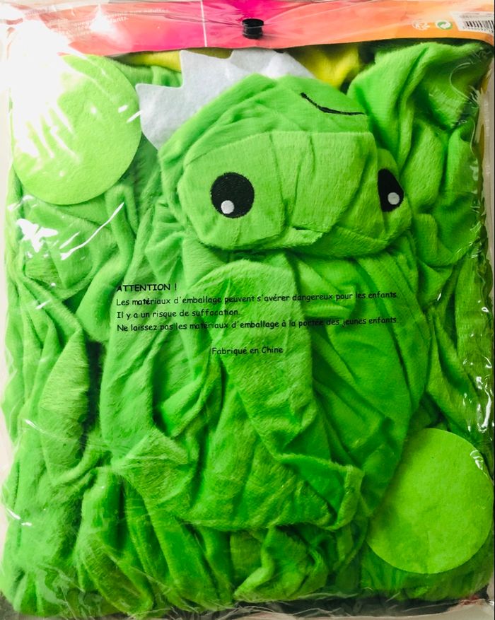 Je vends un déguisement de dinosaure pour homme, neuf. Taille unique.