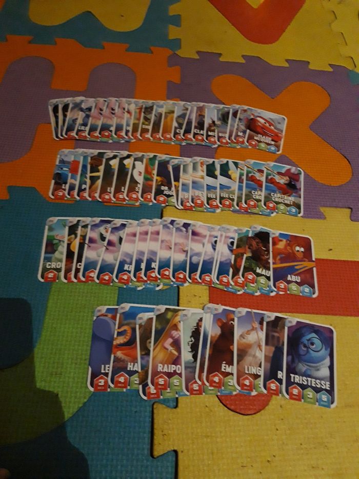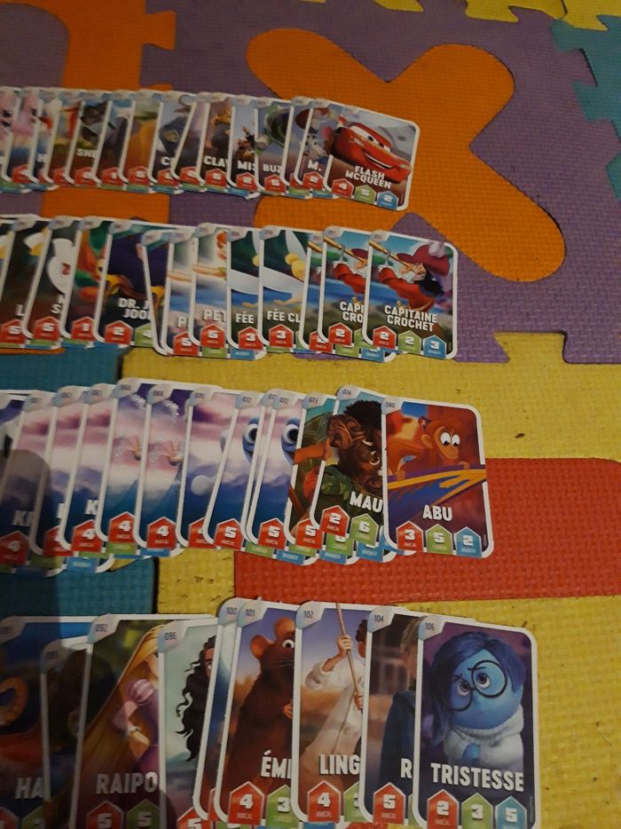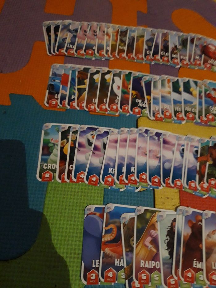 Cartes disney leclerc Numeros : 1 (x2) - 3 - 5 - 6 (x3) - 9 - 10 - 14 - 15 - 17 - 21 - 22 - 24 - 25 - 29 - 30 - 32 - 33 - 35 - 37 - 40 - 42 - 44 (x2) - 45 - 46 - 47 (x2) - 55 (x2) - 56 (x2) - 57 (x3) - 58 - 60 - 63 - 66 (x2) - 67 (x3) - 68 (x2) - 70 - 72 (x3) - 73 - 74 - 80 - 81 - 85 - 86 - 92 - 96 - 100 - 101 - 102 - 104 - 106 Bon état 1 € le tout (Caisse AURE)