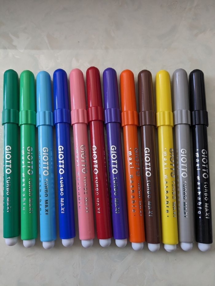 Feutres de très bonne qualité, pointe large pour pouvoir colorier de larges surfaces. Les couleurs sont éclatantes et intenses. Vendus en lot ou vous pouvez composer votre lot. N'hésitez pas à me contacter pour modifier l'annonce.