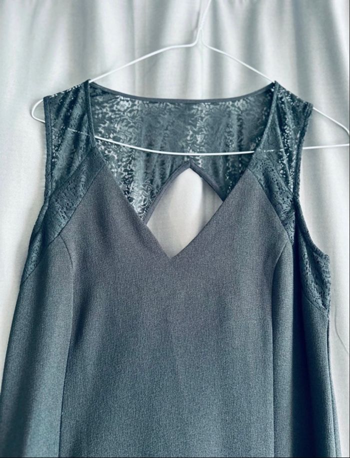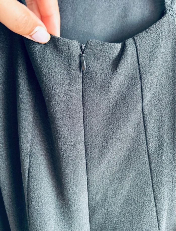 Robe noir mango taille XS en très bon état Coupe droite Détails dentelle Longueur genoux Fermeture éclair derrière