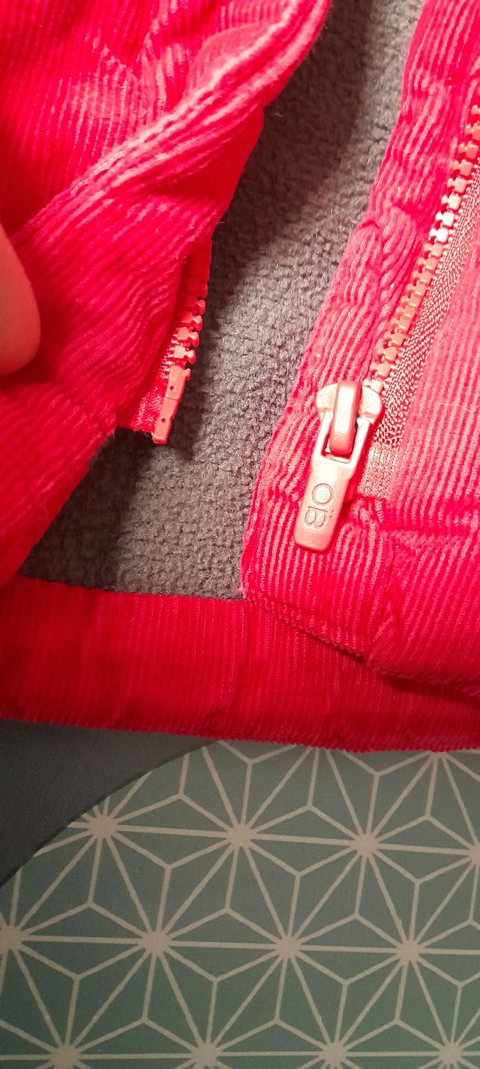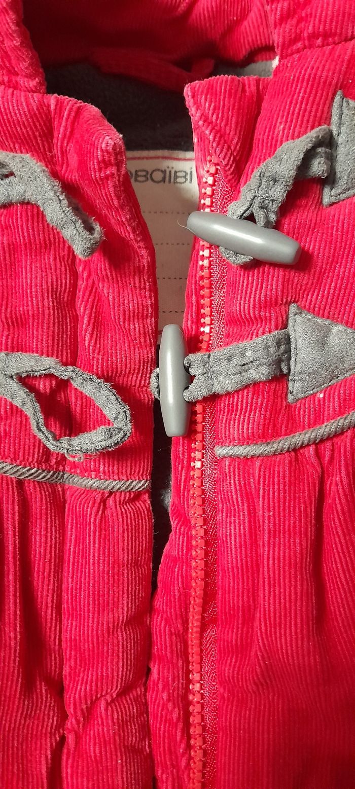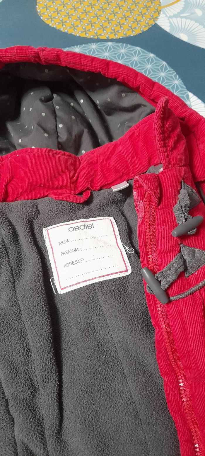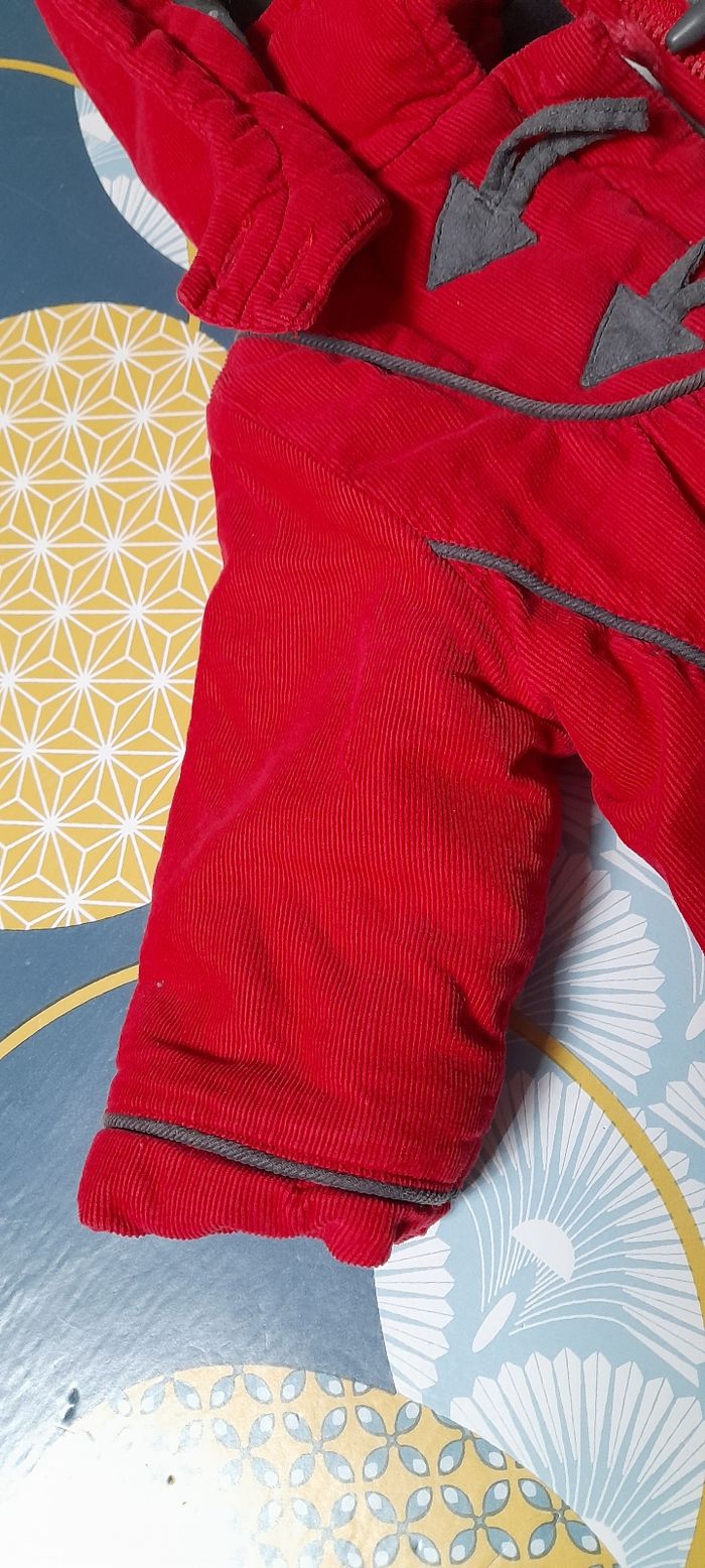 Manteau bébé hiver Fermeture éclair, 2 boutons en haut. Capuche, doublé chaud, Velours rouge très mignon porté