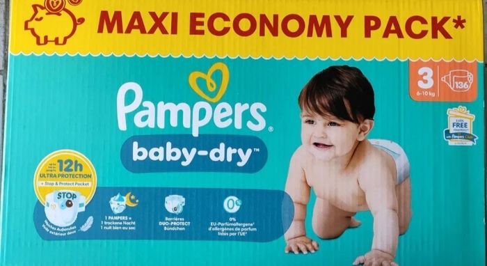 1 carton de 136 couches Pampers baby dry taille 3