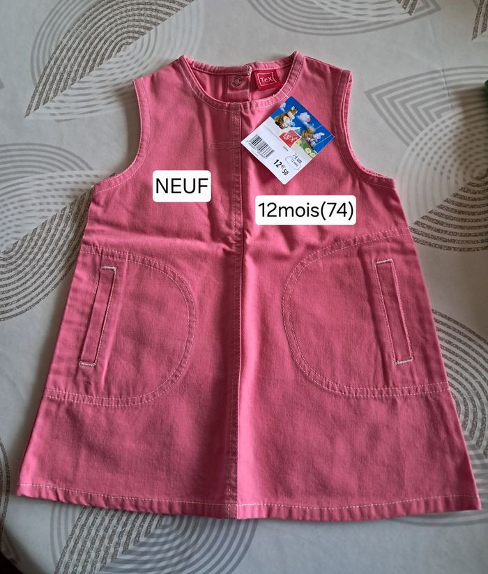 1 robe NEUVE Marque Zgénération avec étiquette + 1 robe NEUVE marque Tex avec étiquette + 1 gilet zippé NEUF marque Bel&Bo avec étiquette pour fille 12 mois (74). Voir détails sur les photos