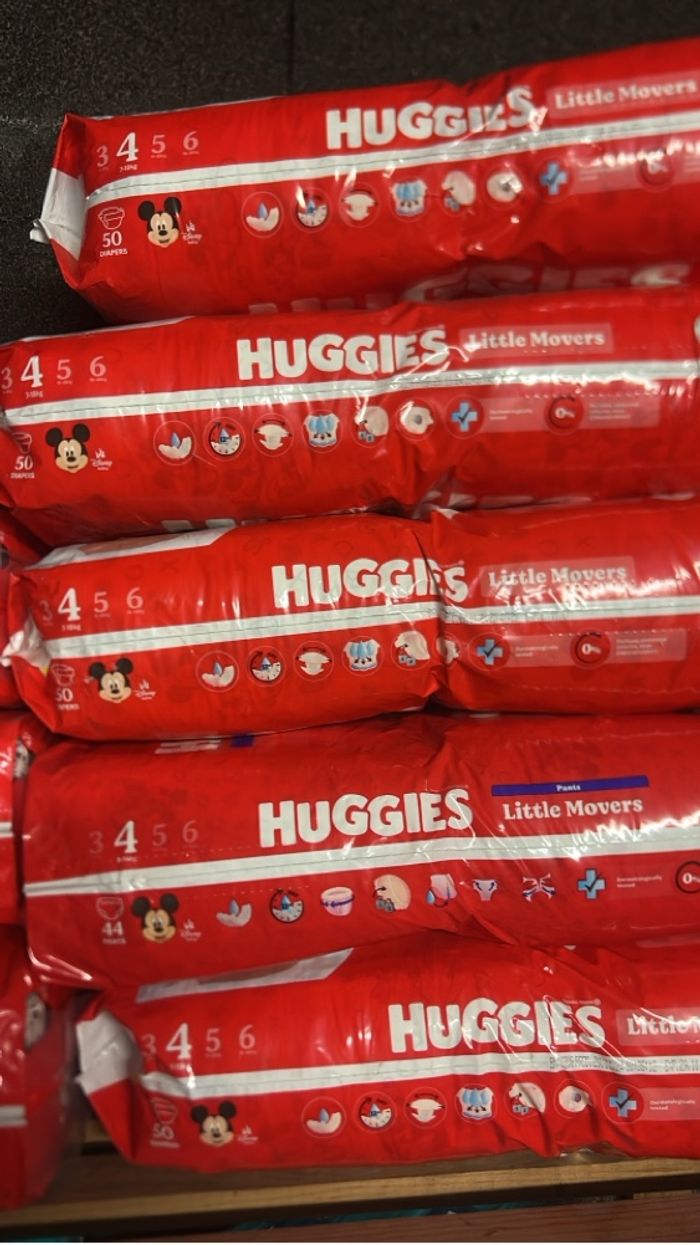 Je vends lots de trois paquets de couches, taille quatre marque Huggies possibilité d’en avoir plus avec prix dégressif