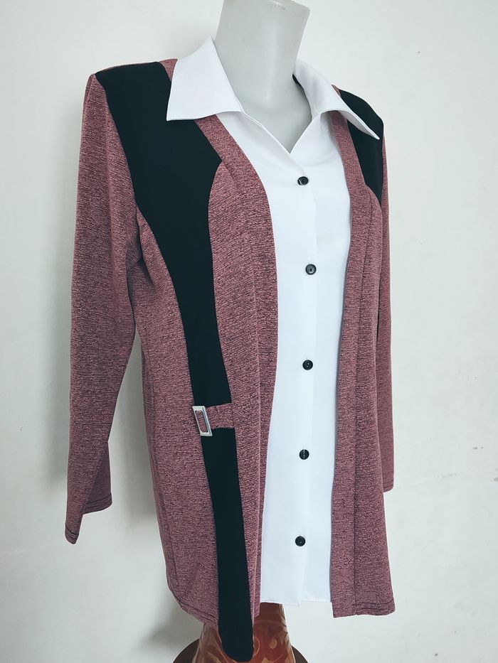 Tunique longue Effet Blazer Original rose/noir style chic & moderne Taille XL - photo numéro 1