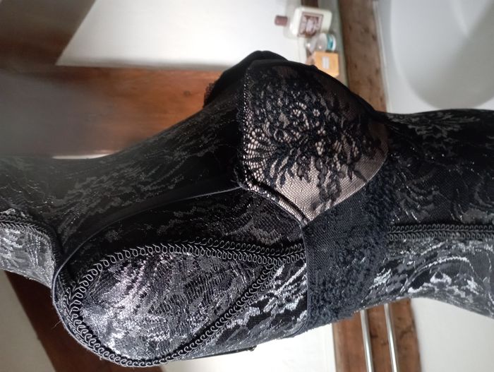 très joli et original soutien gorge noir avec armatures et bonnets rembourés marque ETAM modèle n° 12 taille 95 C attaches de couleur dorée dentelle : 92 % polyamide et 8 % élasthane doublure bonnet : 100 % polyester très bon état, peu porté pour plus de renseignements, n'hésitez pas à me faire un message j'étudierai tout proposition que vous me feriez