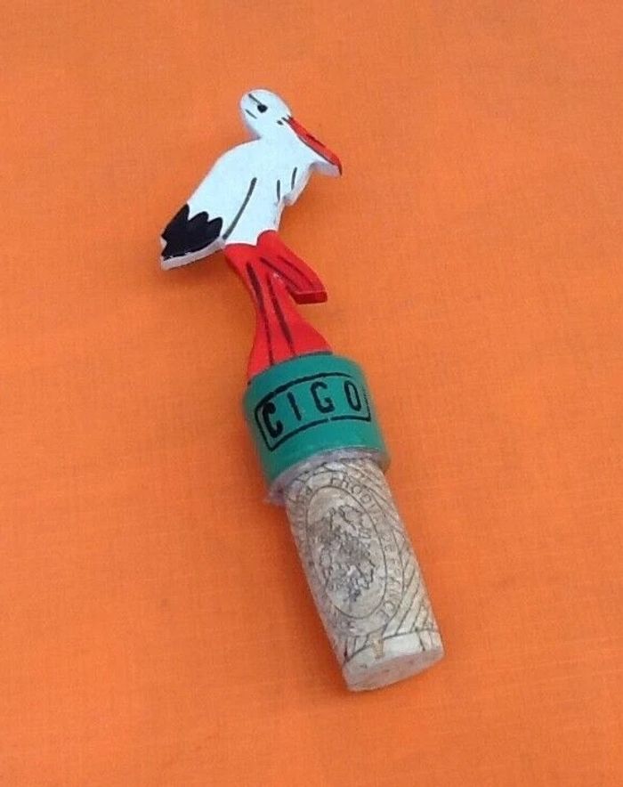 Ancien bouchon de bouteille CIGO Cigogne Bois / Liège Made in France