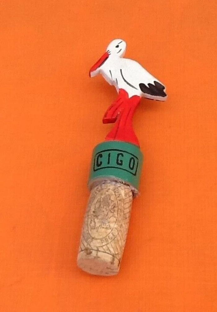 Ancien bouchon de bouteille CIGO Cigogne Bois / Liège Made in France Hauteur : 150mm Poids : 20grs