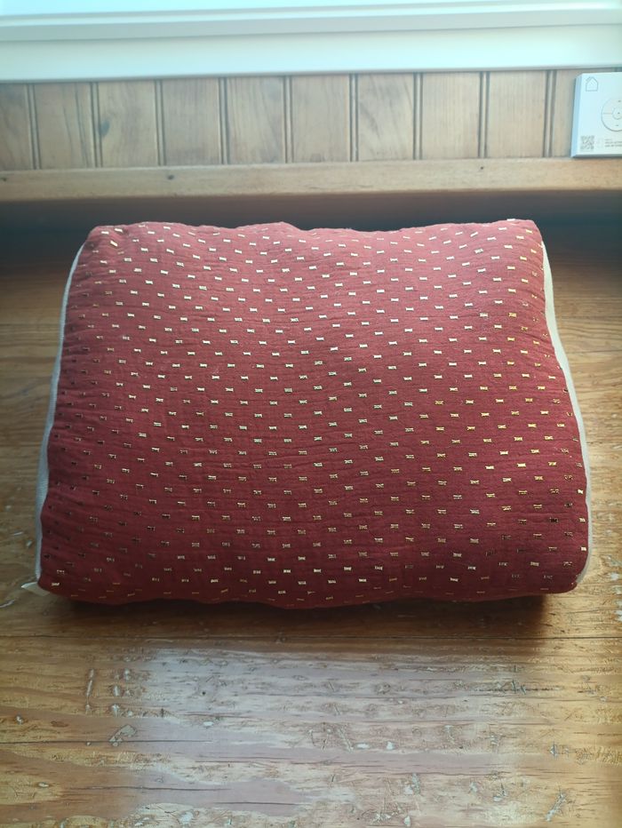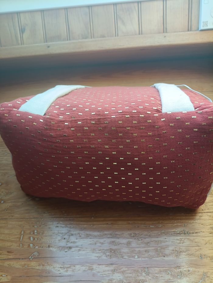 Coussin de lecture en gaze de coton terracotta et tissu beige. Il est rembourré pour votre confort et le tissu plus épais permet un maintien plus ferme. Les grandes lanières permettent de tenir la première et 4e de couverture tandis que les élastiques tiennent vos pages. Idéal pour lire des livres de poche, brochés et reliés. Fournis avec son marque-page assorti. Parfait pour faire plaisir aux lecteurs ardus ou se faire plaisir! Fait main et unique (seul exemplaire disponible)