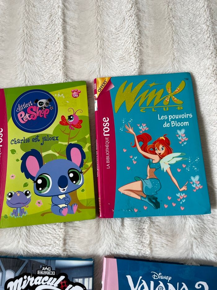 Lot de 10 livres : - 2 mes amis les chevaux : le concours de beauté + la surprise de l’hiver - Little Pet Shop : Charlie est jaloux - Winx : les pouvoirs de Bloom - Titeuf : les filles c’est nul - Barbie : danseuse - Miraculous : la fin du début - Vaïana : l’aventure de Maui et Moni - Lili reprend confiance en elle - Chicorée et la fête de l’arbre d’or #jjsulivres