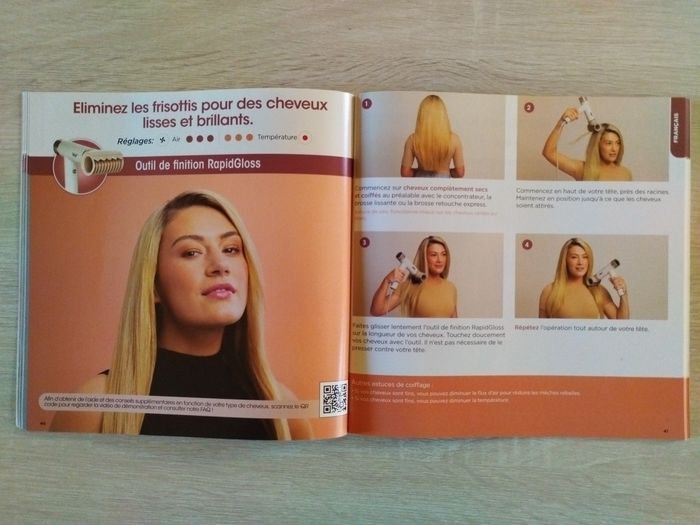 Sèche cheveux shark speedstyle avec une brosse lissante, un concentrateur turbo et un embout rapidgloss La chaleur ne dépasse jamais 110 degrés et n'atteint pas le seuil de dommage thermique de 150 degrés La température va de 60 degrés à 100 degrés Le shark speedstyle ajuste la température et le flux d'air pour chaque accessoire mais vous pouvez modifier manuellement la température et le flux d'air comme vous le souhaitez Sèche cheveux puissant et léger avec un séchage rapide La brosse lissante sèche et lisse en même temps et apporte du volume Le concentrateur pour des cheveux lisses et brillants mèche par mèche L'embout rapidgloss attire les cheveux et dompte les épis et les frisottis pour une finition lisse et brillante Le bouton air froid sert à fixer la coiffure Très bon état proche du neuf Vente cause achat lisseur multi-styler shark glam Prix de vente sur le site shark 180 euros Prix : 75 euros (prix négociable) Sous garantie N'hésitez pas à faire une proposition de prix Retrait sur place ou envoi rapide avec Mondial Relay