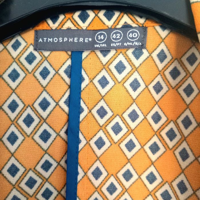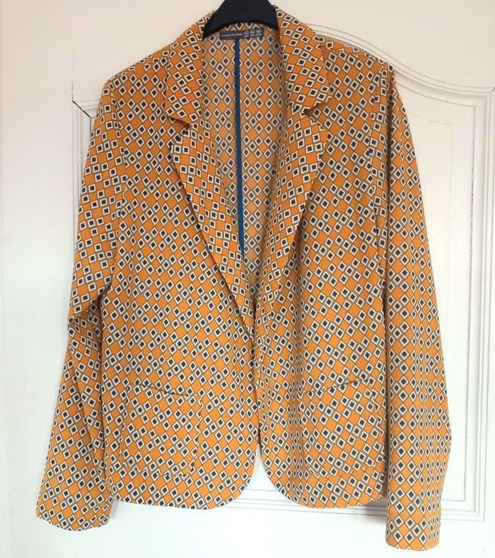 Belle Veste Tailleur ou Blazer, T 40 VINTAGE Couleur Moutarde et Losanges Marine Marque Atmosphère PARFAIT ETAT