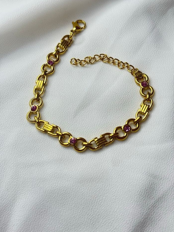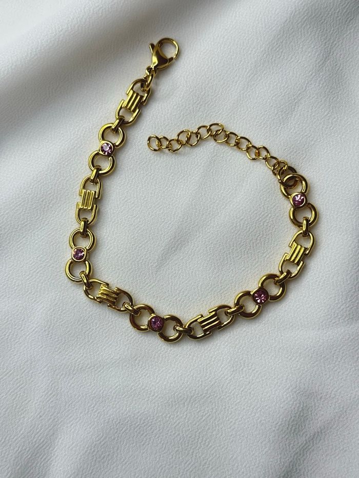 Bracelet Maillons Géométriques en Acier Inoxydable Doré – Cristaux Roses - photo numéro 1