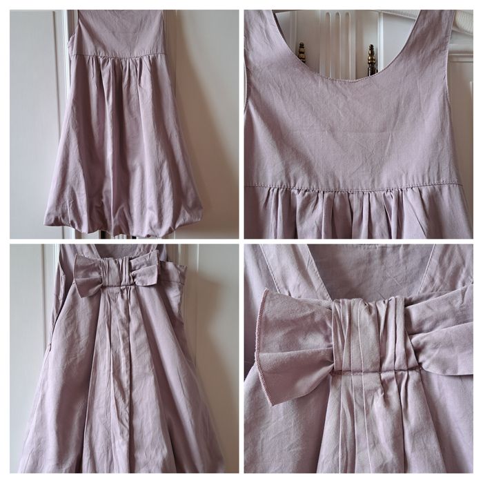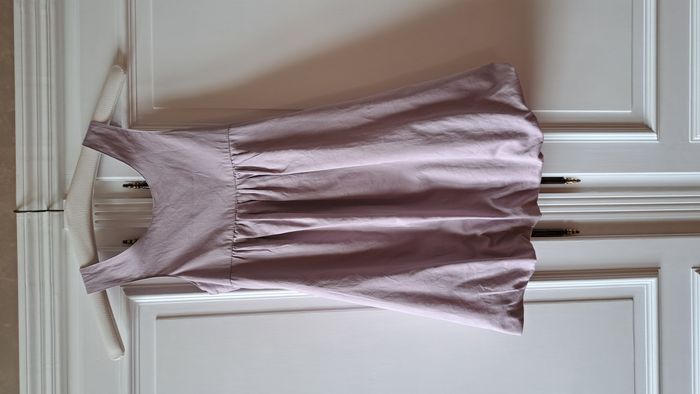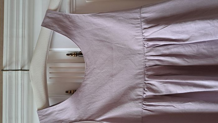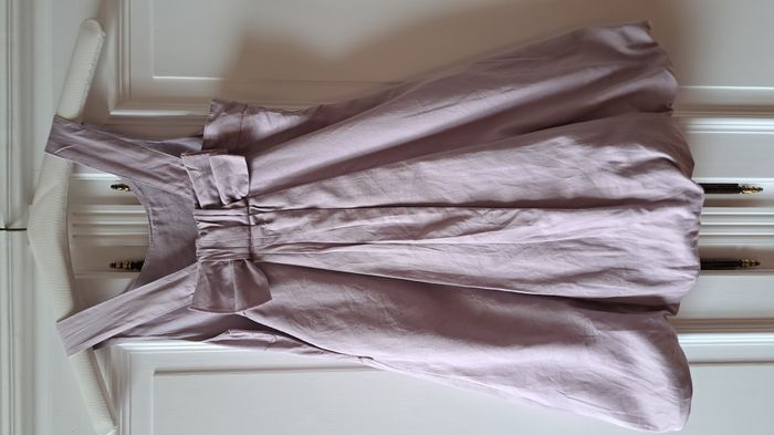 Robe d'été très jolie. encolure ronde. Robe originale un super dos gros nœud dans le dos. couleur rose Lilas. très agréable à porter Impeccable le