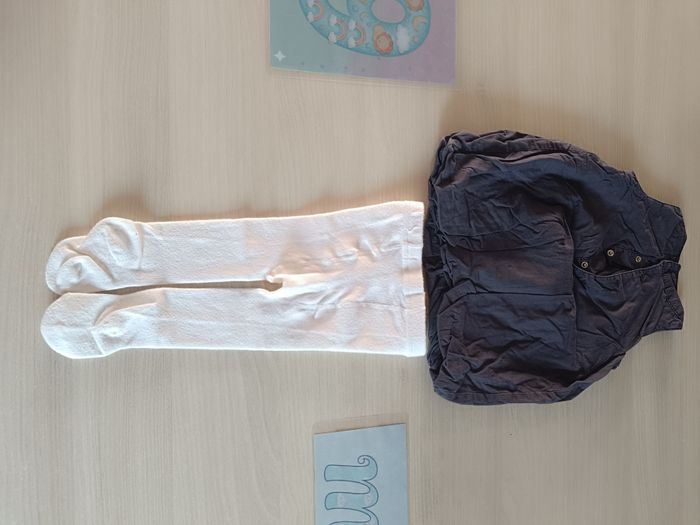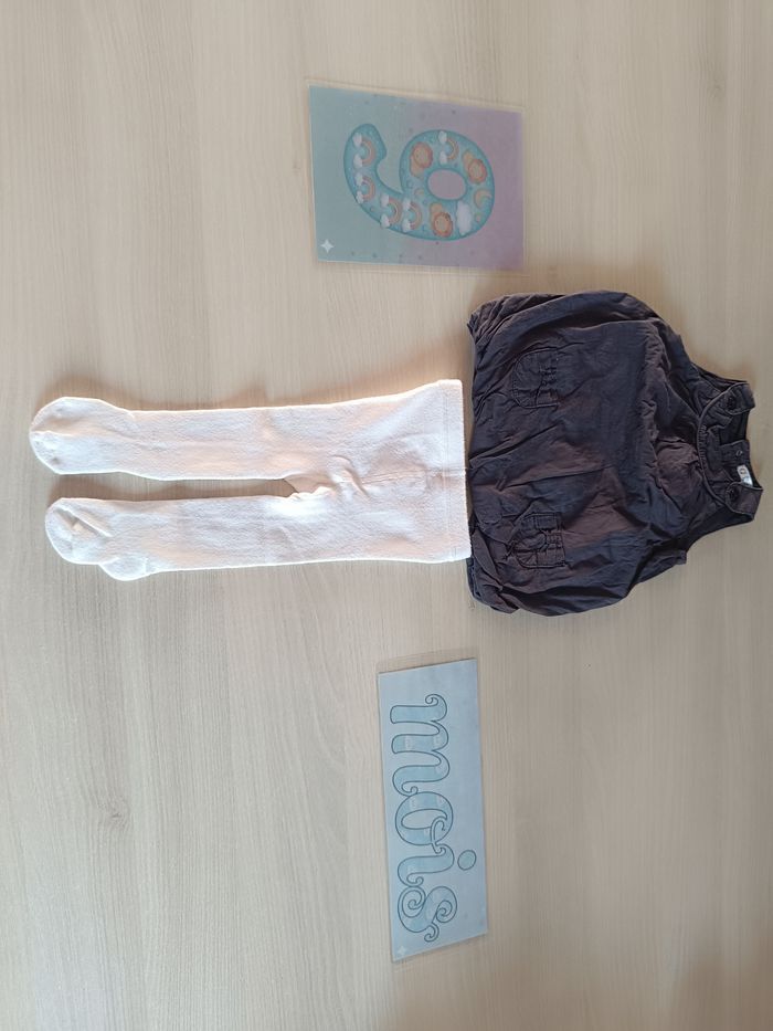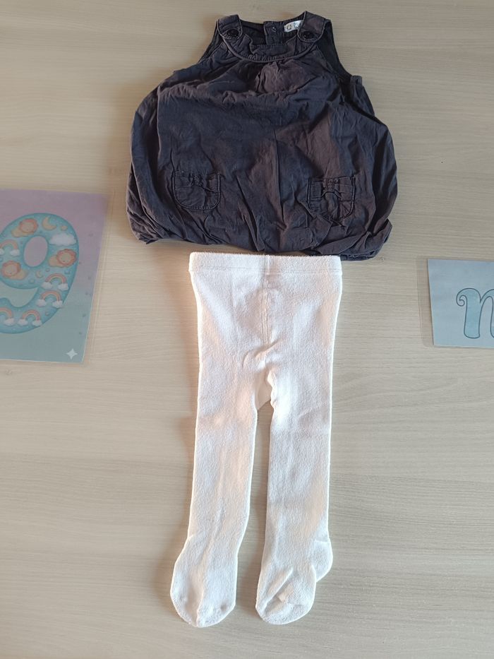 en trés bon état 9 mois kitchoun 100% coton (la robe) 73% coton 25% polyester 2% elasthanne (collant) #9mois #neufmois #kitchoun #coton #polyester #elasthanne
