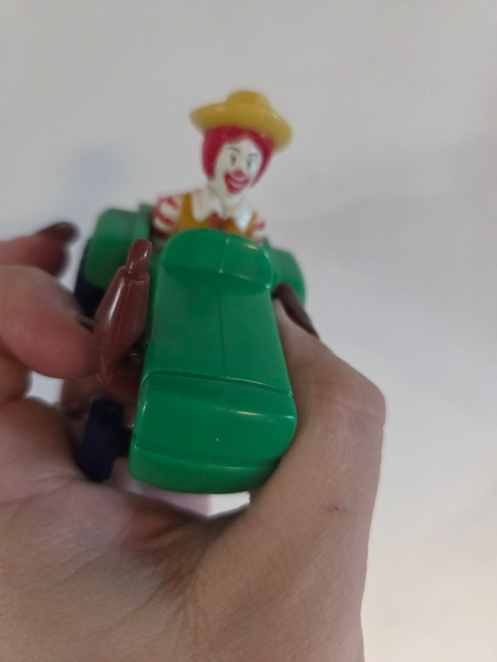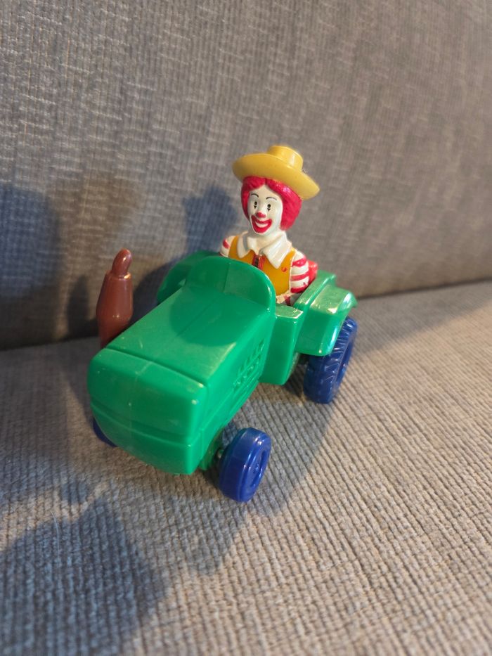 Vends un jouet qui roule sur ses roulettes Mc Donald's Happy Meal. Figurine "RONALD sur son tracteur" Mc Do 1995.