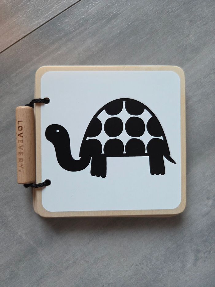 En bois noir et blanc Lovevery livre sensoriel