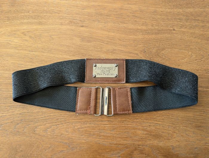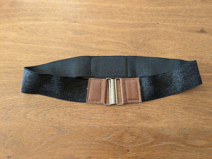 Ceinture élastique noire pailletée, longueur 75 cm. En très bon état.