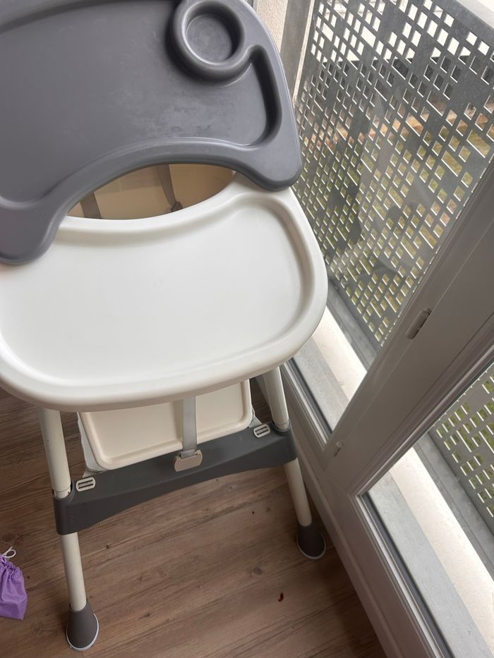 Chaise haute en très bonne état et évolutive Utilisable de 6mois à 3 ans jusqu’à 15kg