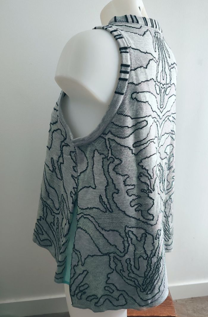 Pull asymétrique sans manches gris motif abstrait Coupe fluide Chic & moderne Neuf avec étiquette - photo numéro 3