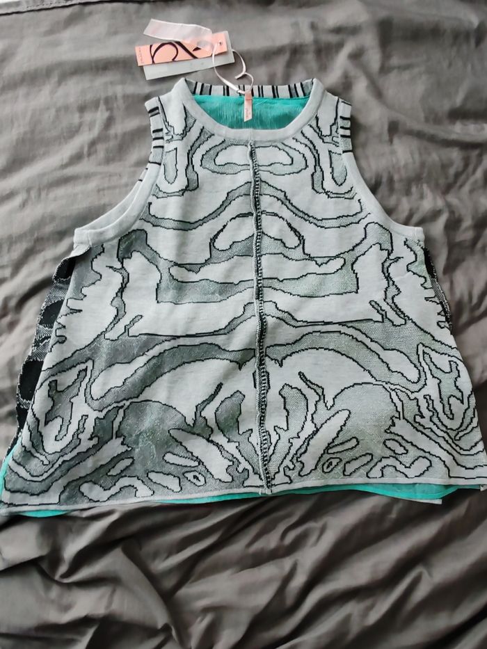 Pull asymétrique sans manches gris motif abstrait Coupe fluide Chic & moderne Neuf avec étiquette - photo numéro 5