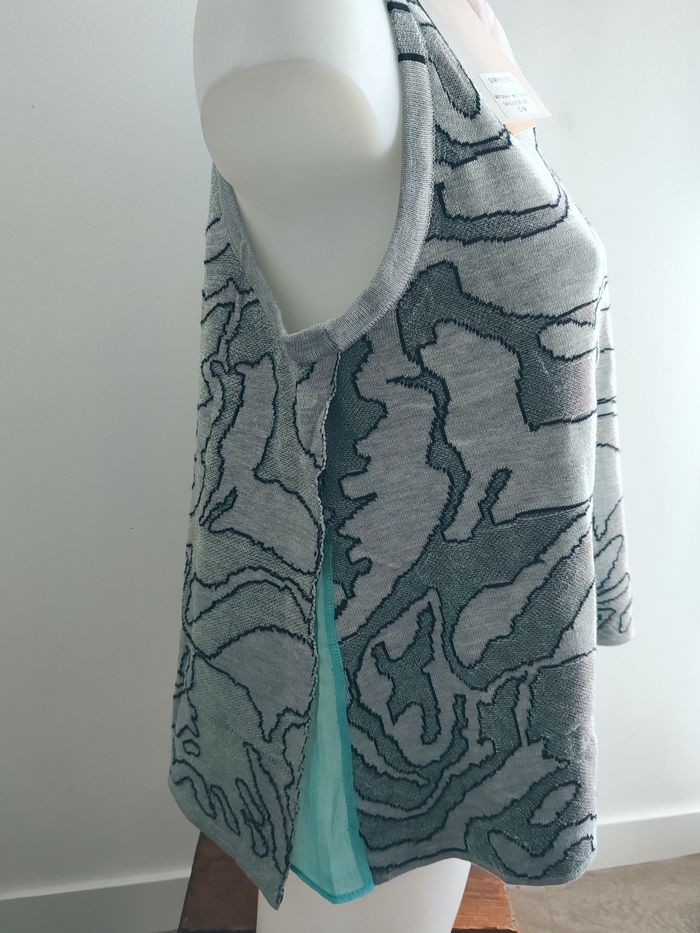 Pull asymétrique sans manches gris motif abstrait Coupe fluide Chic & moderne Neuf avec étiquette - photo numéro 4