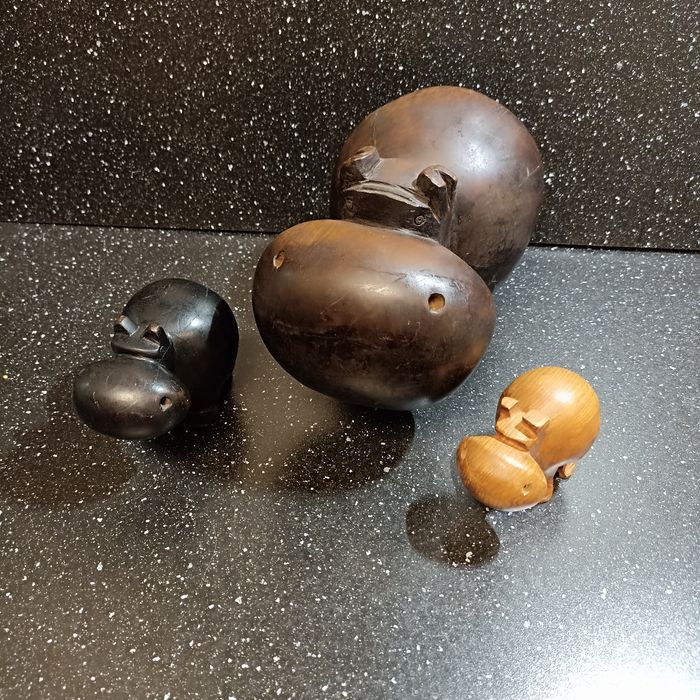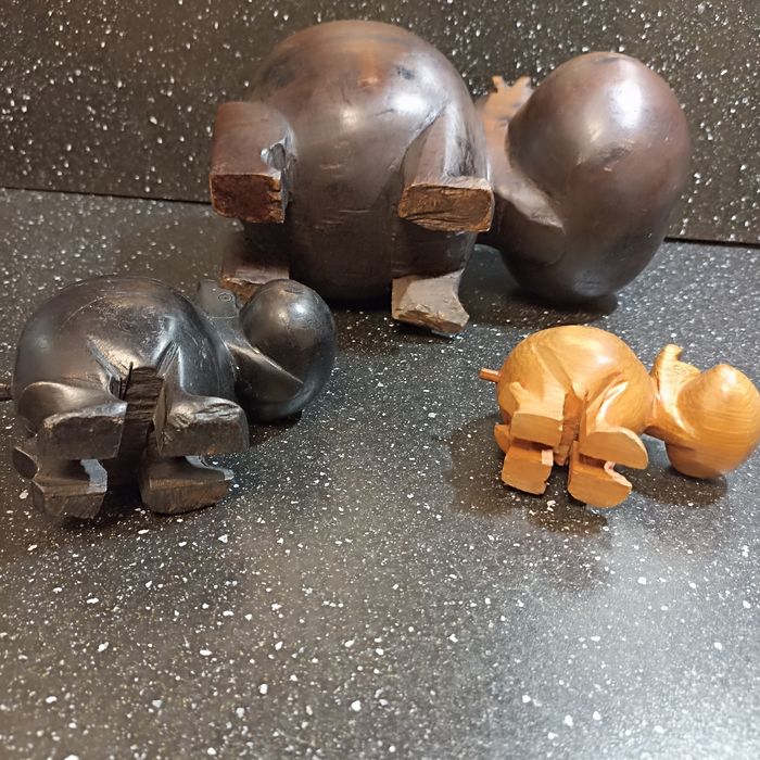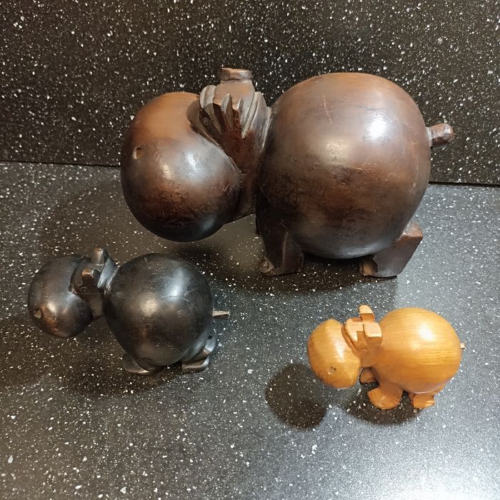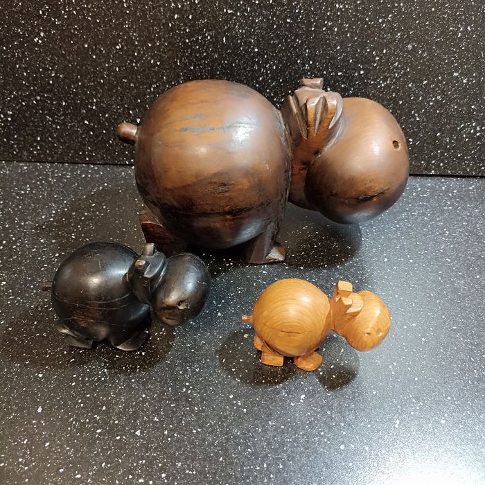 Lot de 3 sculptures en bois exotique hippopotames - photo numéro 1