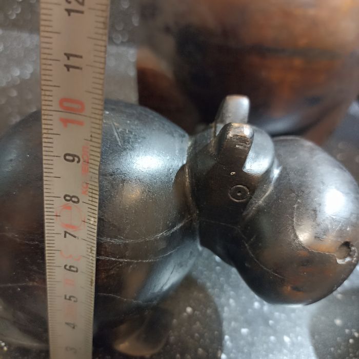 Lot de 3 sculptures en bois exotique hippopotames - photo numéro 10