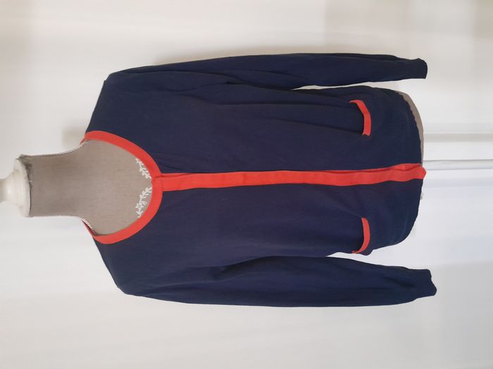Gilet, 2 poche, col rond, attache bouton pression devant Longueur : 58cm Aiss / Aiss : 55cm Matière : 100 % Coton Marque : Camaïeu