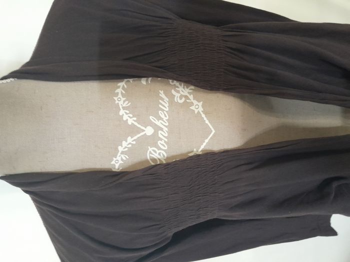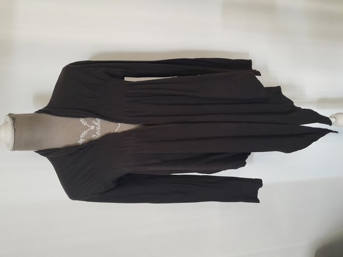 Gilet, sans bouton, smocké sur le haut, attache nœud devant Longueur : 48cm Aiss / Aiss : 52cm Matière : 100 % Coton Marque : Ikks
