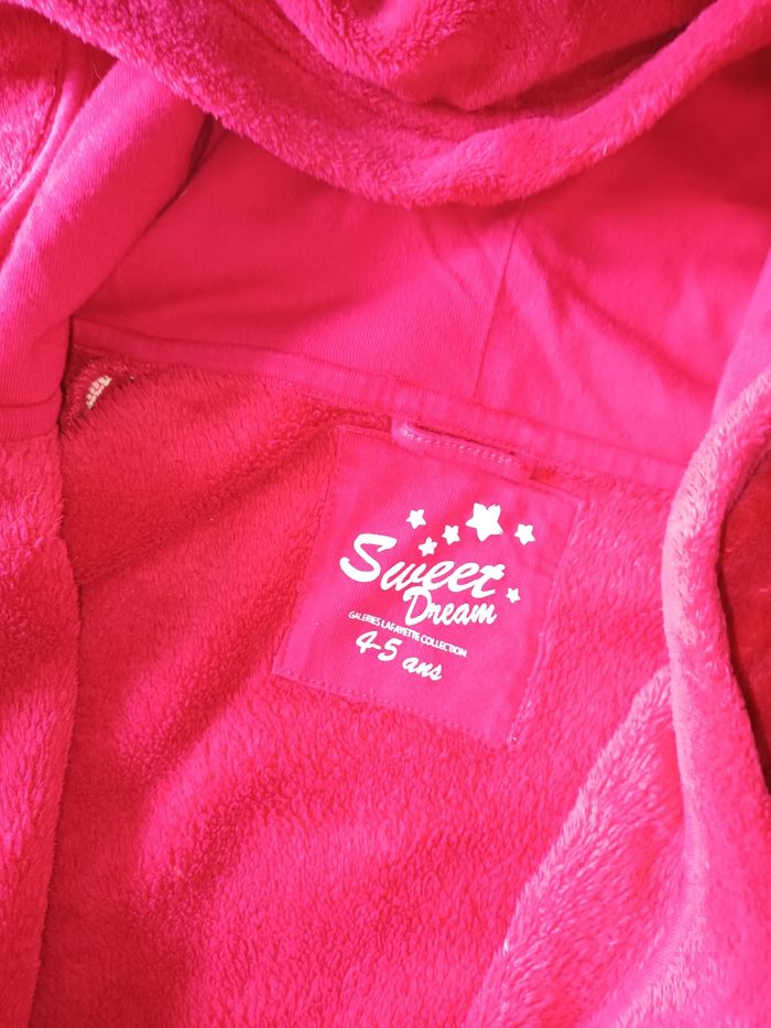 Robe de chambre peignoir Taille : 4 - 5 ans Marque : Sweet dream Galerie Lafayette Couleur : rose #moncinqansfilleemilie #monquatreansfilleemilie Les remises sont activées si plusieurs achats sont faits