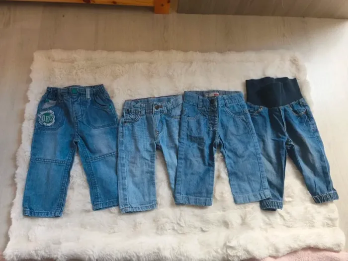 Lot de 4 pantalons / jeans bébé garçon, idéals pour le quotidien. 🔹 Jean Orchestra : taille élastique, facile à enfiler 🔹 Jean Tex Baby : taille avec bouton 🔹 Jean Name It : coupe droite 🔹 Jean Kiabi : taille large/stretch type jogging, très confortable ✅ Très bon état général ✅ Propres, sans tache ni trou ✅ Différents styles pour varier les tenues 👶 Confortables et pratiques pour bébé 📦 Envoi rapide et soigné 💬 Possibilité de lot avec d’autres vêtements bébé