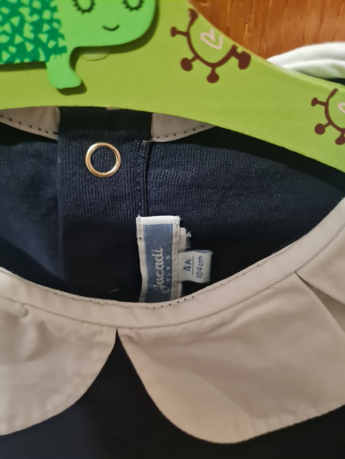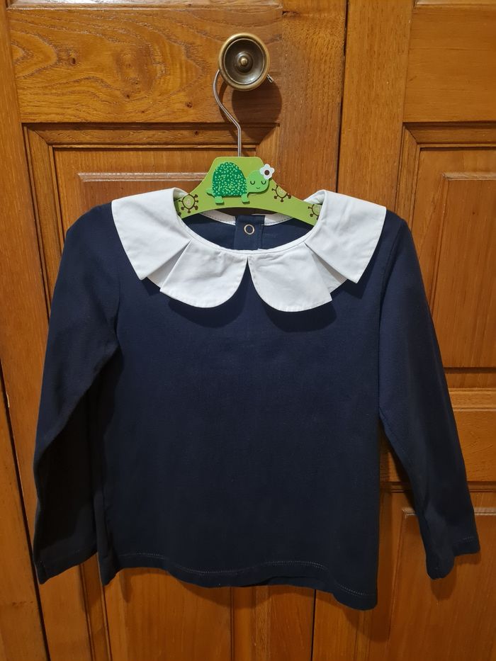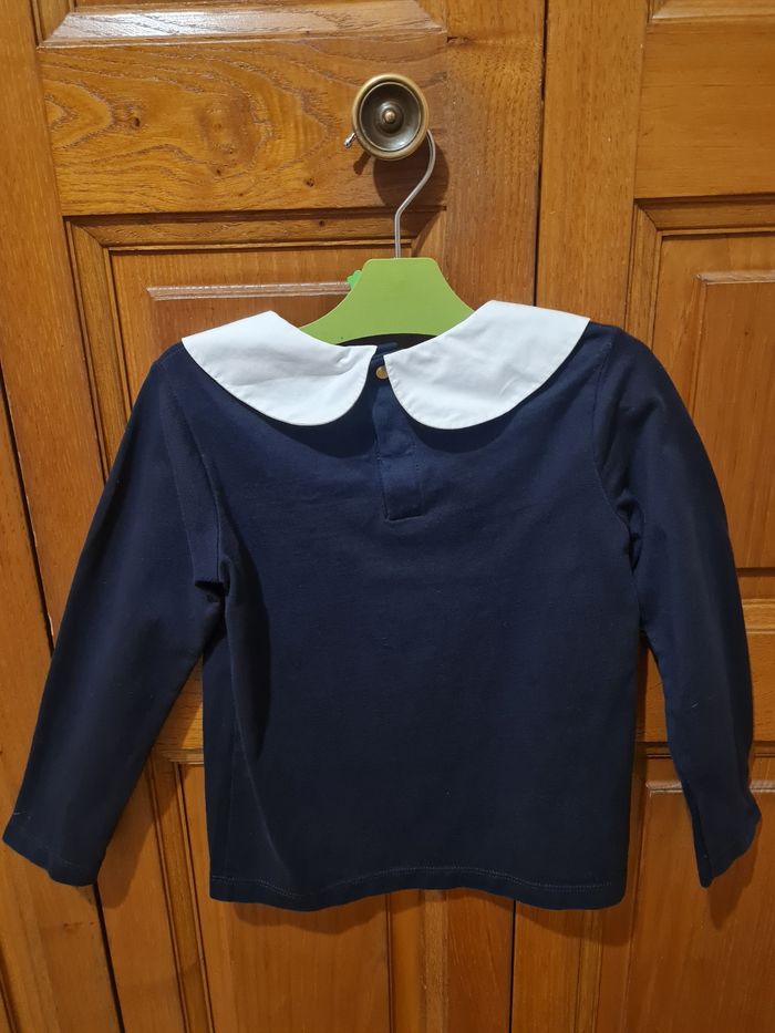 T-shirt manches longues bleu marine col blanc. En taille 4 ans de la marque Jacadi.