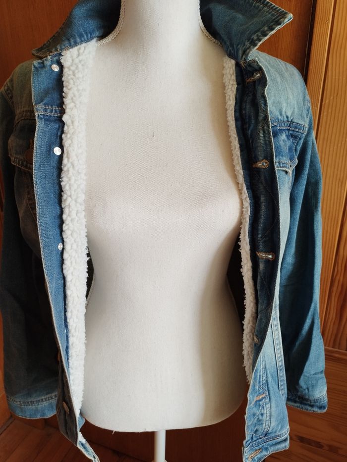 Veste en jean (mixte)Veste en jean Tape à l'oeil (mixte) Intérieur doublé en sherpa très chaud Couleur : bleu délavé Taille XS/14 ans Très bon état Prix : 6 euros Retrait sur place ou envoi possible