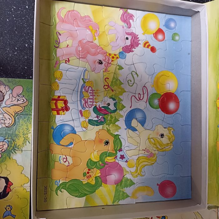 Lot de 5 puzzles vintage Mon petit poney, une des pièces n'est pas d'origine, refaire avec du carton Emilie, personnage rouge abîmé Chantal Goya 2 blanche neige, 1 des pièces à un défaut voir photos 📌 Envoi rapide et soigné 📌 Maison non fumeur et sans animaux Il s'agit d'objets d'occasion ayant donc déjà servi, ils peuvent parfois présenter des traces d'usage et d'usure , merci de bien regarder les photos .