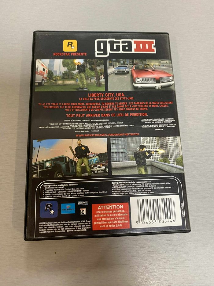 Jeu vidéo PC CD-ROM GTA 3 / GTA III Avec notice et carte, les cd sont en bon état 📌 Envoi rapide et soigné 📌 Maison non fumeur et sans animaux Il s'agit d'objets d'occasion ayant donc déjà servi, ils peuvent parfois présenter des traces d'usage et d'usure , merci de bien regarder les photos .