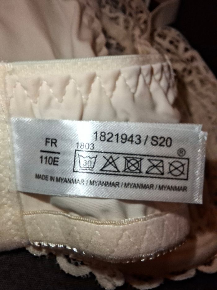 Vends magnifique soutien-gorge à armatures en dentelle travaillée, coloris crème / blanc cassé. ​État : Neuf, jamais porté (sans étiquette cartonnée). ​Taille : 110E (Taille FR). ​Détails : * Très jolie dentelle florale et géométrique sur l'ensemble des bonnets. ​Bretelles réglables avec rappel de dentelle sur le devant. ​Fermeture au dos par 3 agrafes sur 3 positions pour un maintien optimal. ​Matière confortable : mélange de polyamide et élasthanne pour la souplesse. ​Style : Féminin et élégant, offre un excellent maintien pour les poitrines généreuses. ​Envoi rapide et soigné.