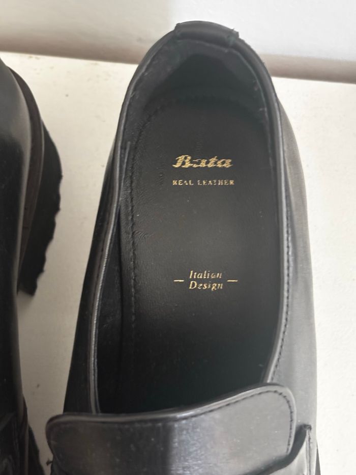Très belle paire de mocassins de la marque Bata Neufs: portés 1h mais ne sont pas à ma taille, prix d’achat 104€ En cuir Taille 38 Hauteur talons 4,7 cm Noirs