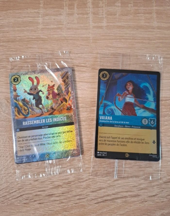 Lorcana - Vaiana Aventurière de la terre et de la mer - Promo - Ravensburger 26/P2 - FR - 7 Lorcana - Rassembler Les Indices - Zootopie 2 - Promo - Ravensburger 27/P3 - FR - 7 Prix : 2 euros le lot de 2 cartes Pas de remise en main propre. Envoi uniquement. En 24h max. N'hésitez pas à me contacter pour plus d'informations.