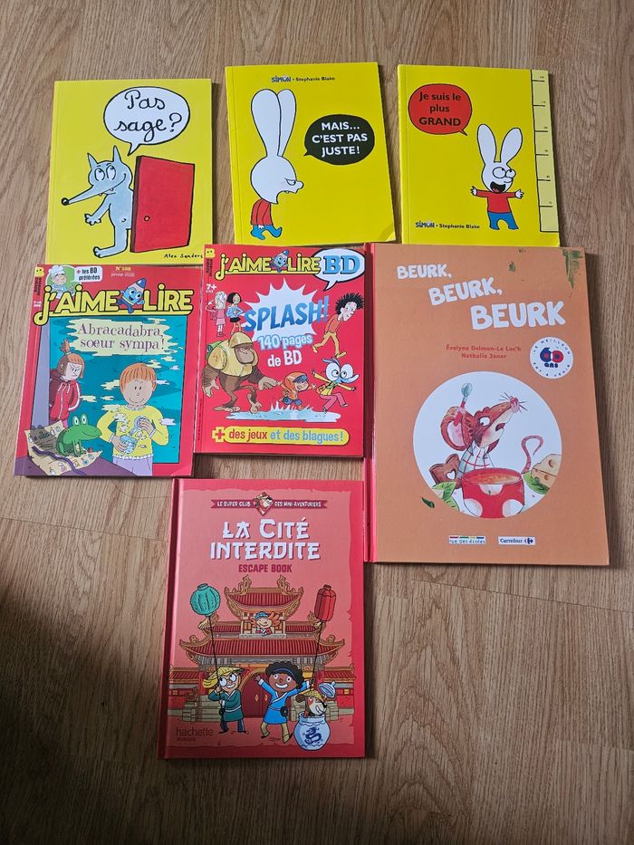 Magasine j aime lire Et des petits livre en bon état Sur le libre beurk il y a une tâche verte sur la couverture