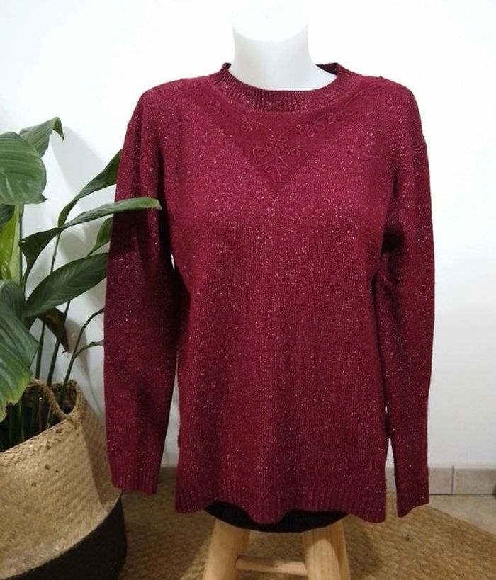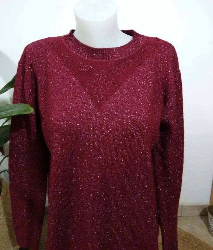 pull bordeaux avec reflet argenté - photo numéro 1