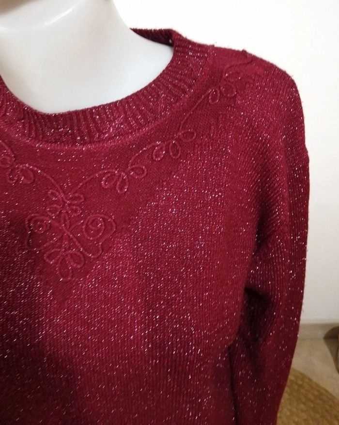pull bordeaux avec reflet argenté - photo numéro 5