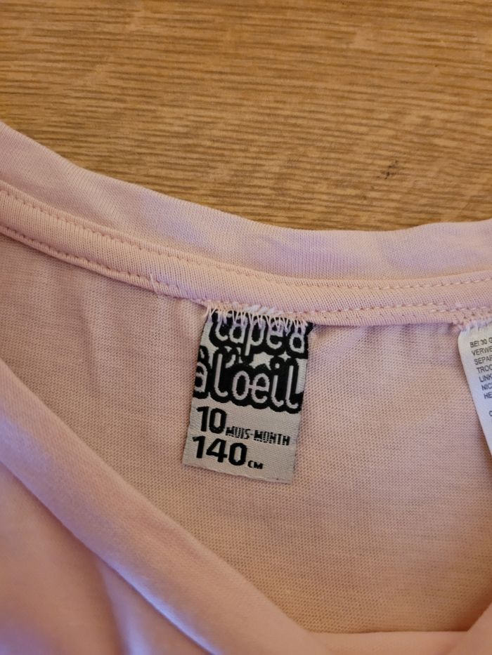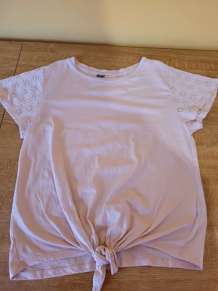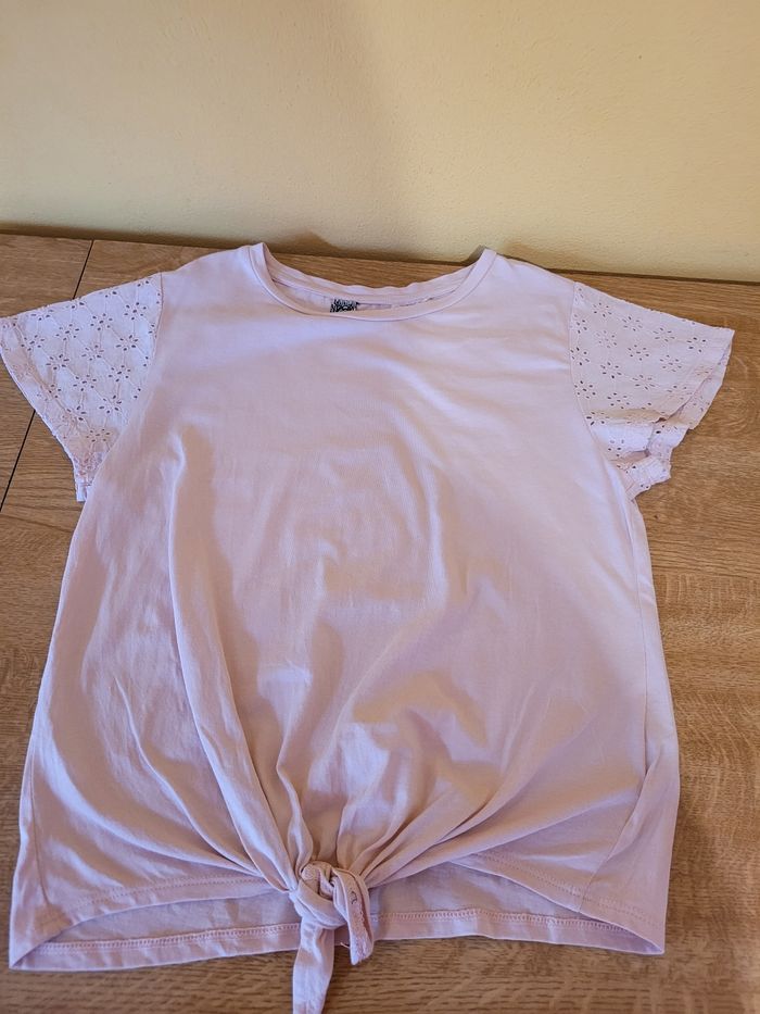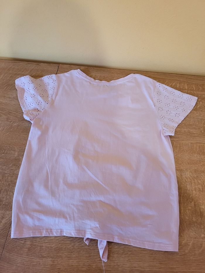Joli tee shirt manches courtes. Rose avec manches en broderie anglaise . Se noue sur le devant taille 10 ans marque Tape à l' oeil